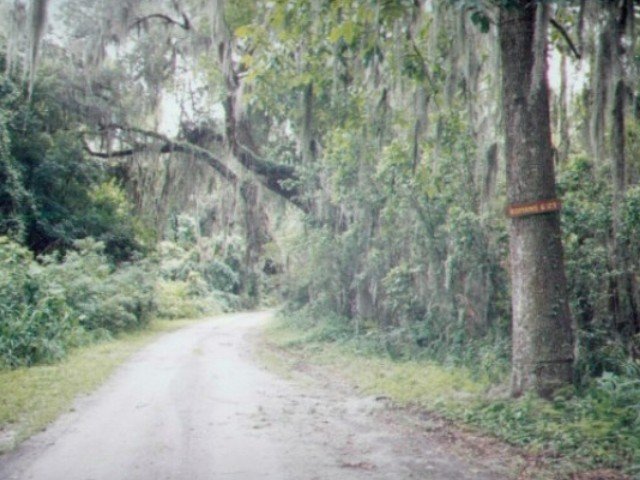 This road runs through the swamp to access a citrus grove on the lakeside property (main camp). It has been widened some over the years but remains packed clay/sand.
