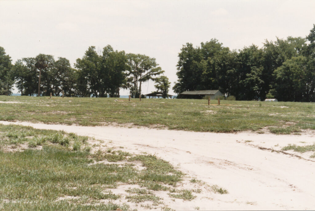 This view is from the shop in 1983. The chapel site is between here and the lake. Notice the soft sand road. The road from Sunnyside Dr was like this in the early years. Many cars were pulled out with the tractor.
