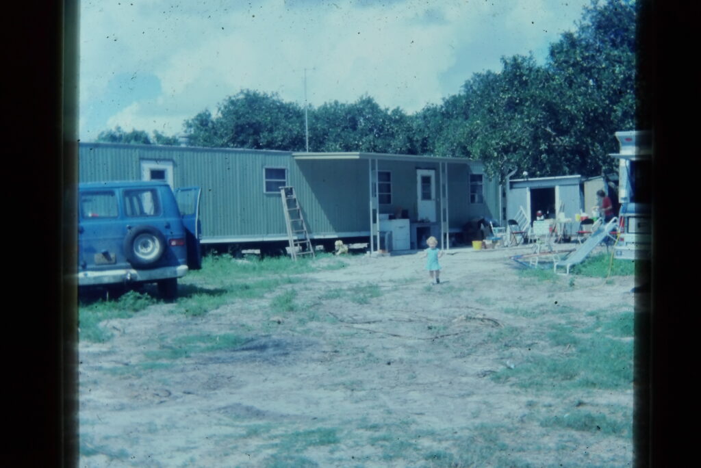 The first camp family (Ted and Karen Thisse) lived in an RV located about where the photographer is standing in the top picture.